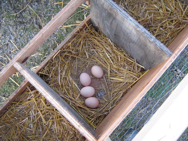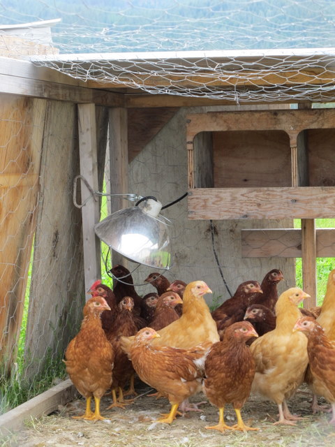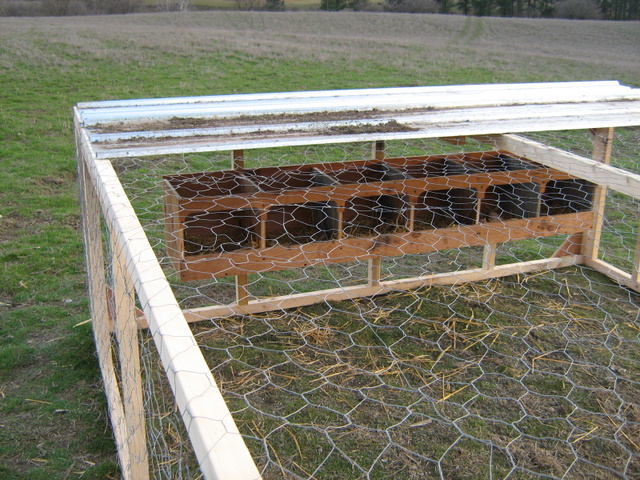 In the early spring, we use our chicken tractor as a kind of brooding house for our older chicks–when they are old enough to be out in the open but not big enough to be in with the rest of the hens. During the spring and summer, we use our chicken tractor to keep the chickens on green grass during the daytime. The hens spend the night in the coop, for warmth and protection, but they troop right out to the chicken tractor each morning to be fed.